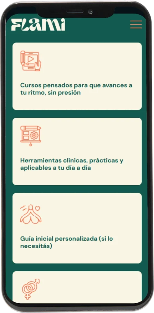 Flami existía como idea, pero no como marca. No había una identidad que acompañara el proyecto ni una estructura digital capaz de sostener cursos, charlas y contenidos formativos de manera profesional.