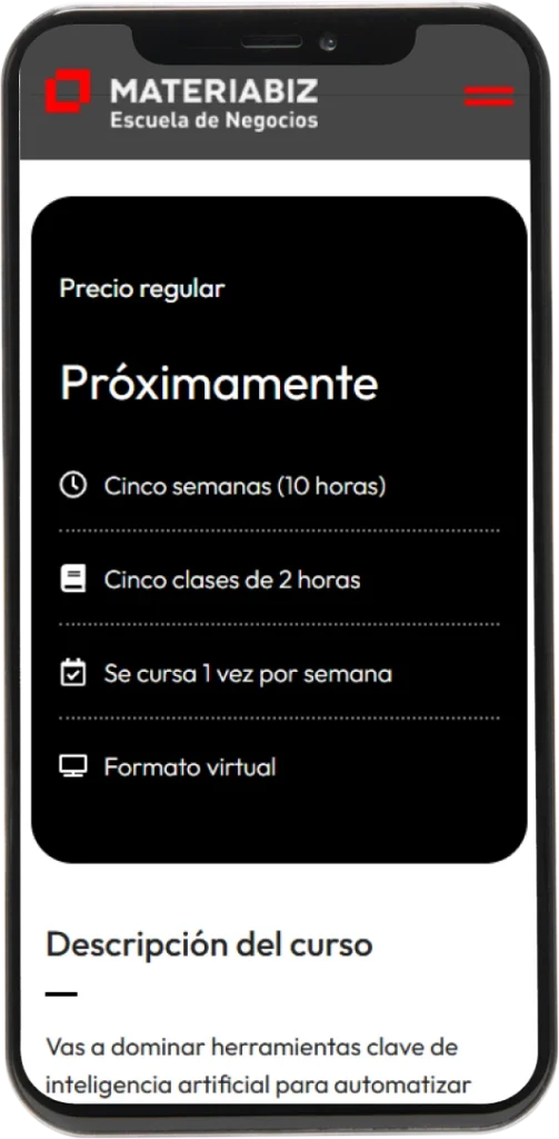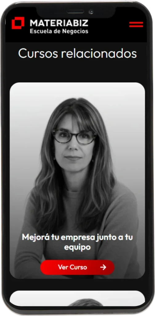 Una vez aprobado el prototipo, se desarrolló la web y se integraron las funcionalidades de ecommerce necesarias para gestionar suscripciones mensuales y la venta de cursos online. Hoy MateriaBiz es una plataforma que vende, cobra y gestiona de forma simple, sin volverse un problema cada vez que hay que cambiar o gestionar algo.
